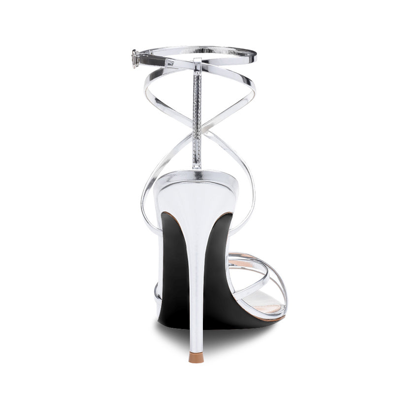 "Multi-Strap Lace-Up Design: 3-5 delicate straps crisscross around the ankle and instep, merging Roman sandal heritage with contemporary edge. This architectural strapping system delivers anatomical arch support while sculpting a leg-lengthening silhouette — crafting the illusion of elongated, slimmer proportions through strategic negative-space cutouts."